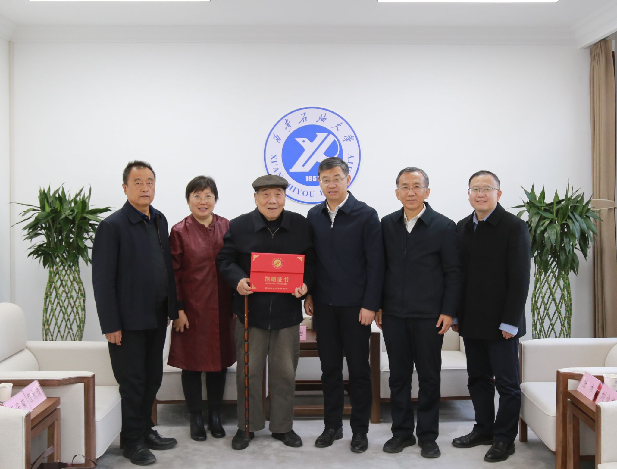 11月17日下午,我校54级校友王国治向学校捐赠了西安石油学校“三好学生”奖状、西安石油学校毕业证明、1978年全国科技大会奖励证书等珍贵档案。校长王进富,校党委副书记张木,校党委副书记程永清在鄠邑校区行政楼二楼接待室接见王国治及其女儿王庆菊女士,并进行了交流座谈。座谈会上,王国治校友动情地回顾了在西安石油学校的求学时光,对母校的培养表示衷心感谢。他深情讲述了自己自1957年毕业后投身石油事业以来的奋斗历程...
