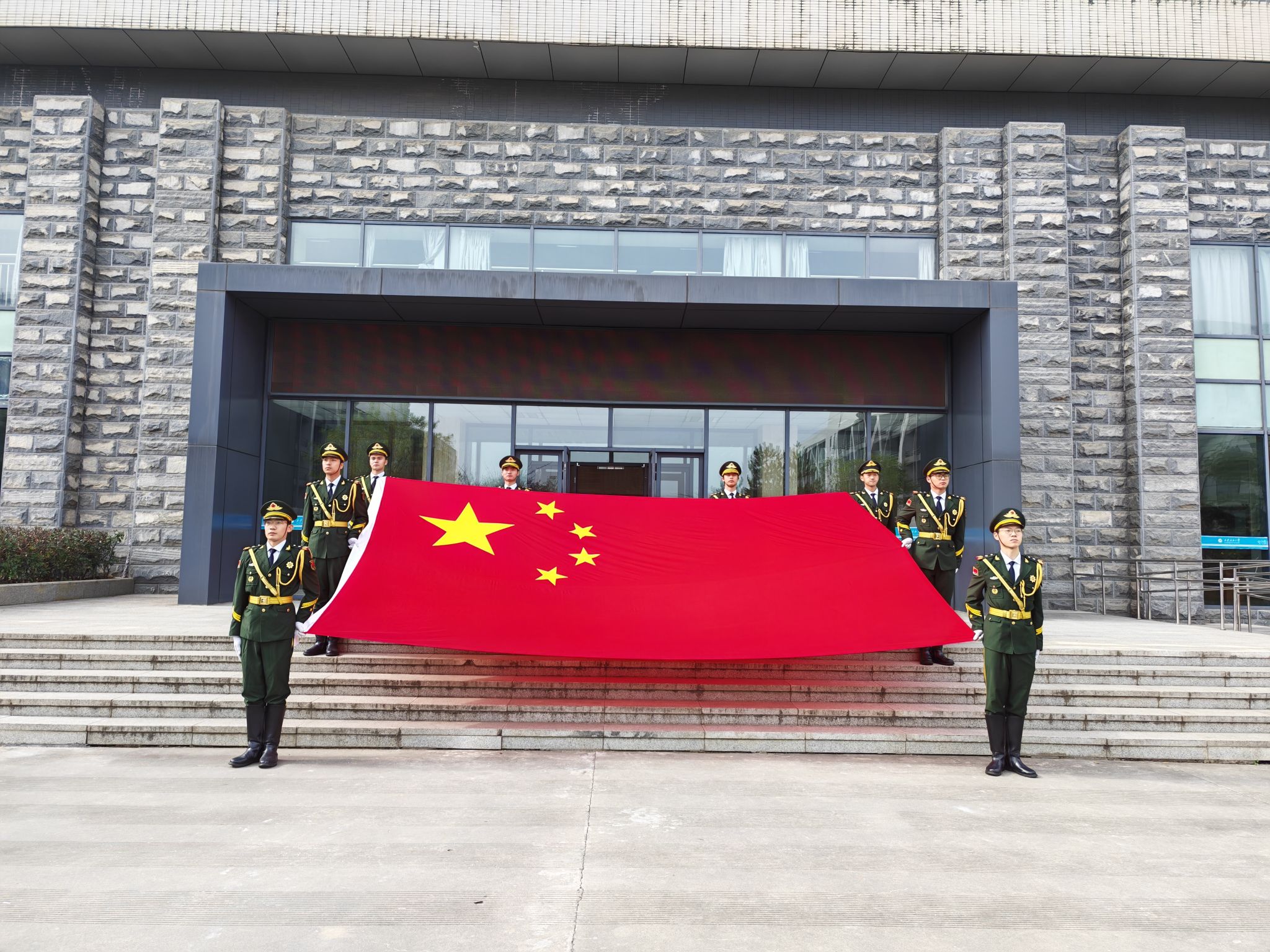 校国旗护卫队8名队员高擎国旗入场,将国旗护送至校史馆展示并入柜。该面国旗旗长5米、宽3.3米,为超大国旗,整幅旗面无拼接,工艺特殊。此次入馆仪式后将永久保存在我校校史馆中。