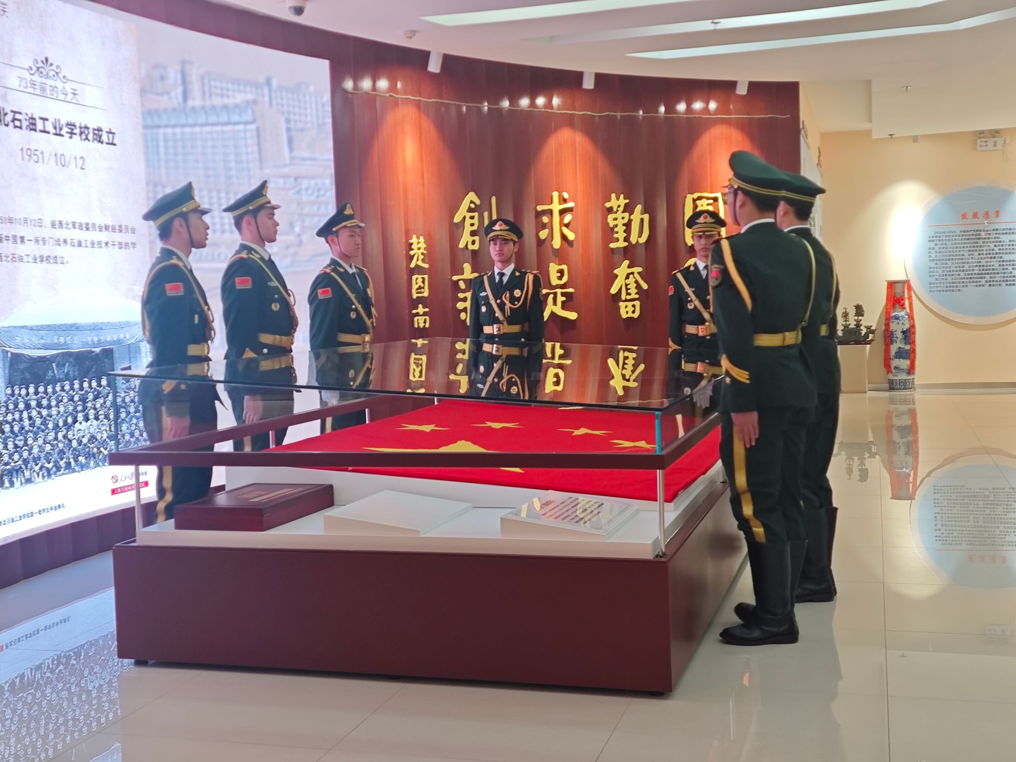 最后,档案馆馆长马超在总结发言中表示,国旗入馆,是荣誉更是责任。通过讲述该面国旗与校庆日的特殊渊源,校史馆将串联起学校与祖国能源事业同频共振的发展故事。我们将以国旗为指引,赓续红色血脉,传承石油精神,让爱国情、强国志、报国行在西石大的校园里代代相传,共同书写学校高质量发展与祖国能源事业繁荣的崭新篇章!